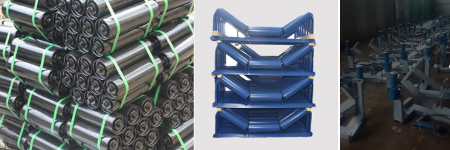 槽鋼和圓管—非固定部分的機身,采用無螺栓連接的支架,結構簡單;全機用槽形托輥,下托輥及傳動滾筒等。