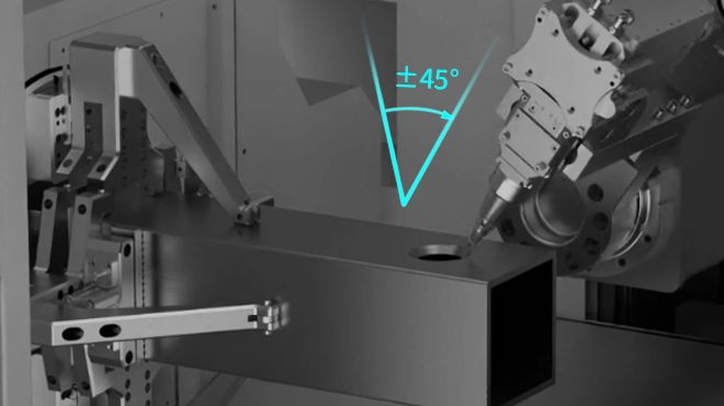 激光頭切割噴嘴位于旋轉中心,切割精度更高。不需要管材來回送料,防止薄壁管材在反復拉料夾持時出現形變,小管坡口切割精度更高。