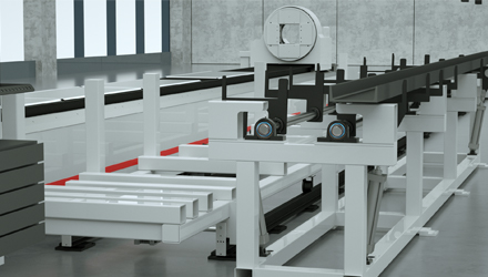 送料小車通過地軌將管材送達(dá)料區(qū),機(jī)械臂抓取工件到隨動(dòng)裝置它的單組托舉力300公斤,可托舉邊長260mm以內(nèi)工件完成切割后,磁鐵起吊將工件吊至翻料機(jī)構(gòu)自動(dòng)化翻面起吊能力設(shè)定為300kg,可吸附面寬度≥80mm機(jī)械臂自動(dòng)碼料,小車沿鐵送往工件吊裝區(qū)域。